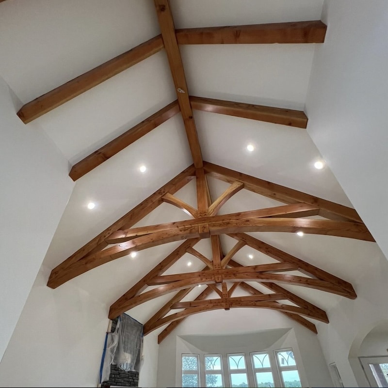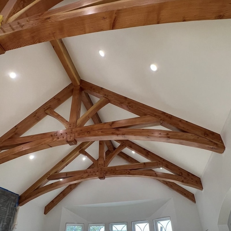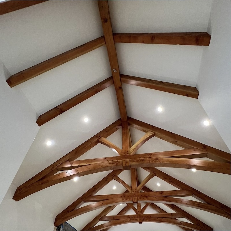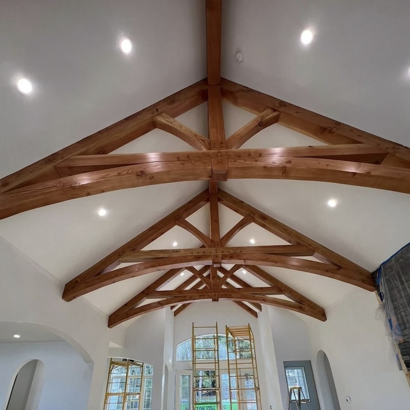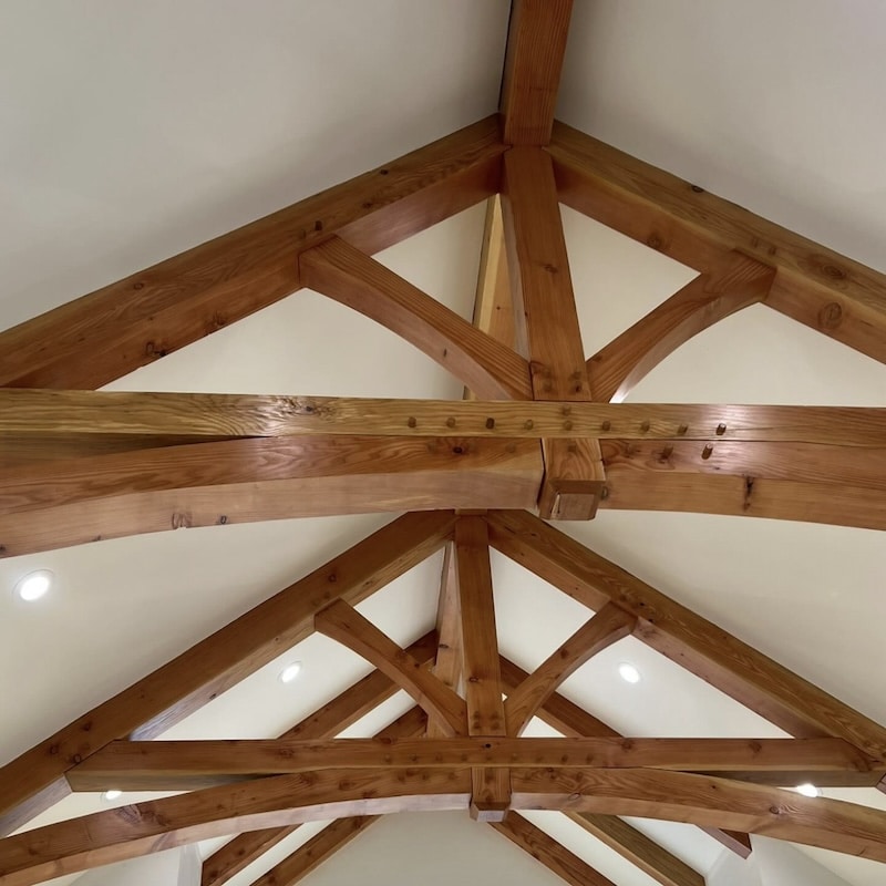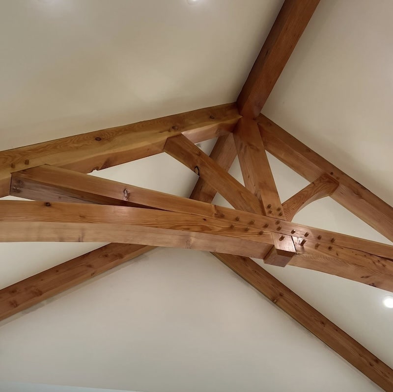 Fir wood beams finished with clear coat.